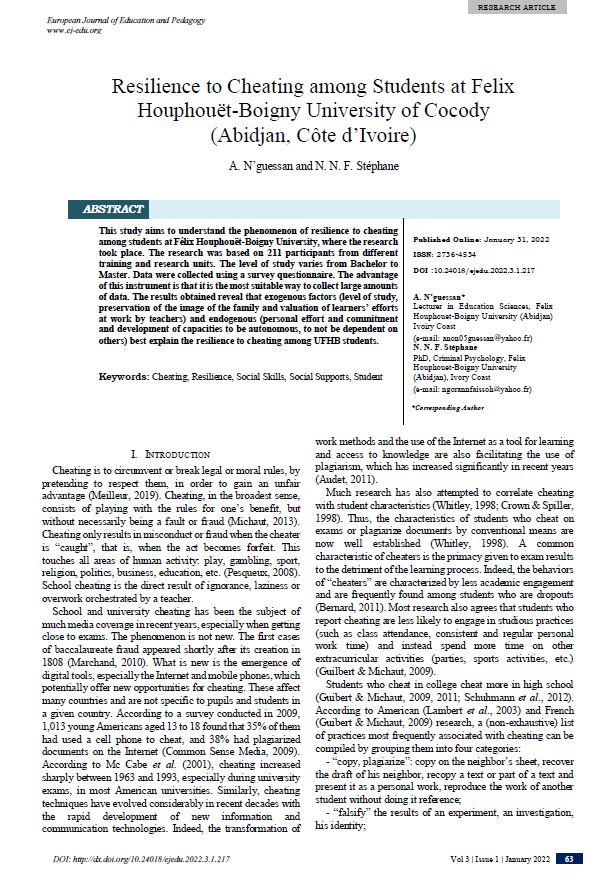 Resilience to Cheating among Students at Felix Houphouët-Boigny University of Cocody (Abidjan, Côte d’Ivoire)