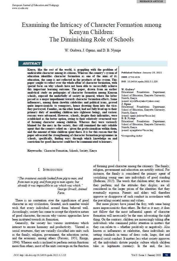 Examining the Intricacy of Character Formation among Kenyan Children: The Diminishing Role of Schools