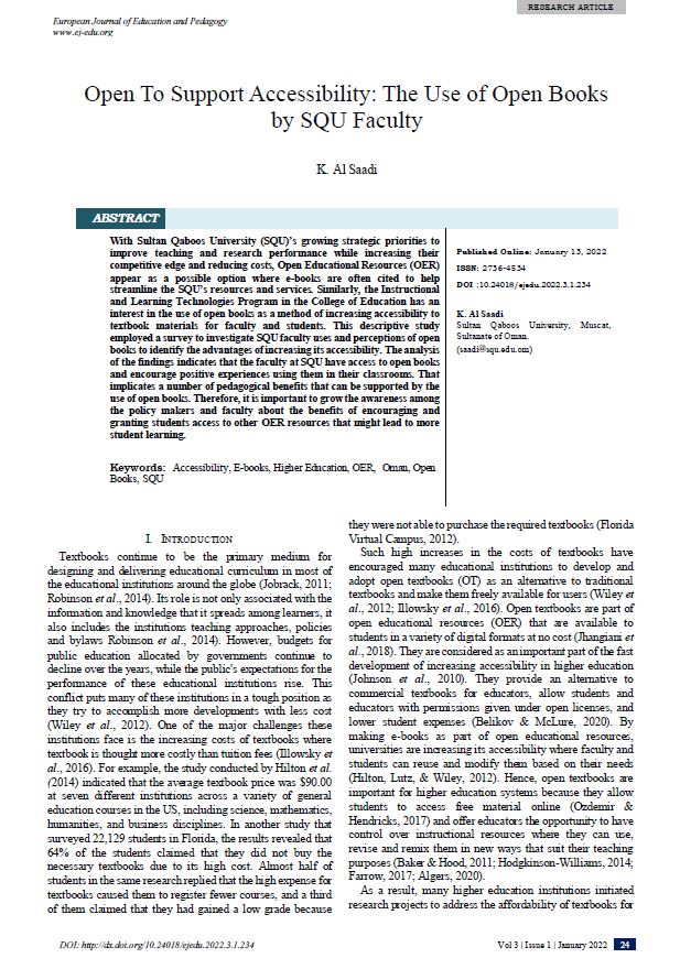 Open To Support Accessibility: The Use of Open Books by SQU Faculty