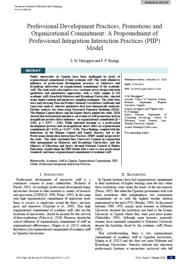 Professional Development Practices, Promotions and Organizational Commitment: A Propoundment of Professional Integration Interaction Practices (PIIP) Model