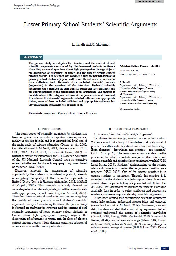 Lower Primary School Students’ Scientific Arguments